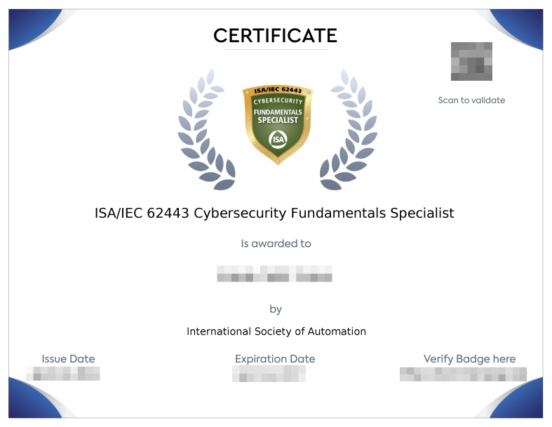 • IEC/ISA-62443 Cybersecurity Fundamental Specialist