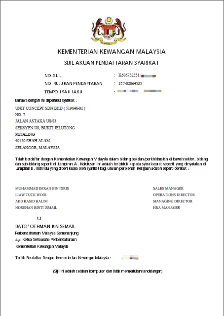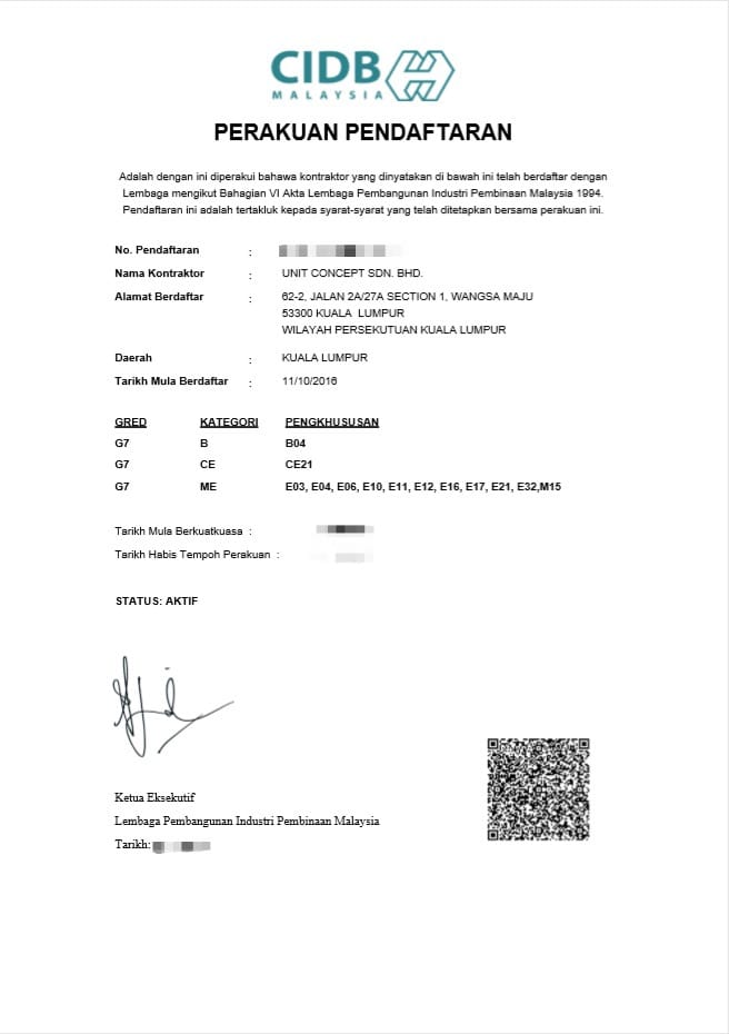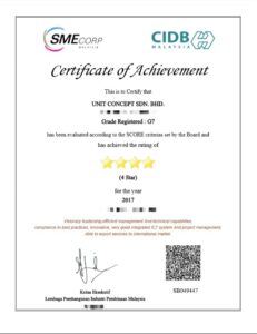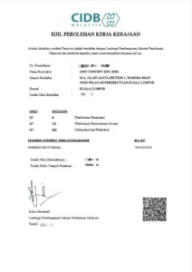 • CIDB Grade G7, SPKK